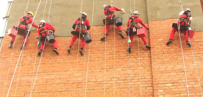 Picado y retirada manual con herramientas ligeras de todos los sobrantes de mortero en los muros de ladrillo tosco.