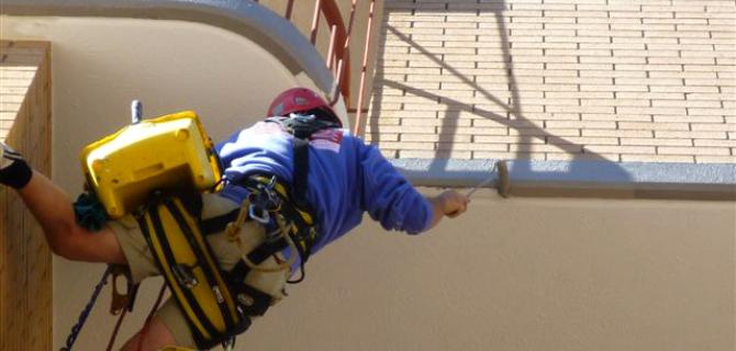 Aplicación de de imprimación en los paramentos verticales pertenecientes a la fachada principal.